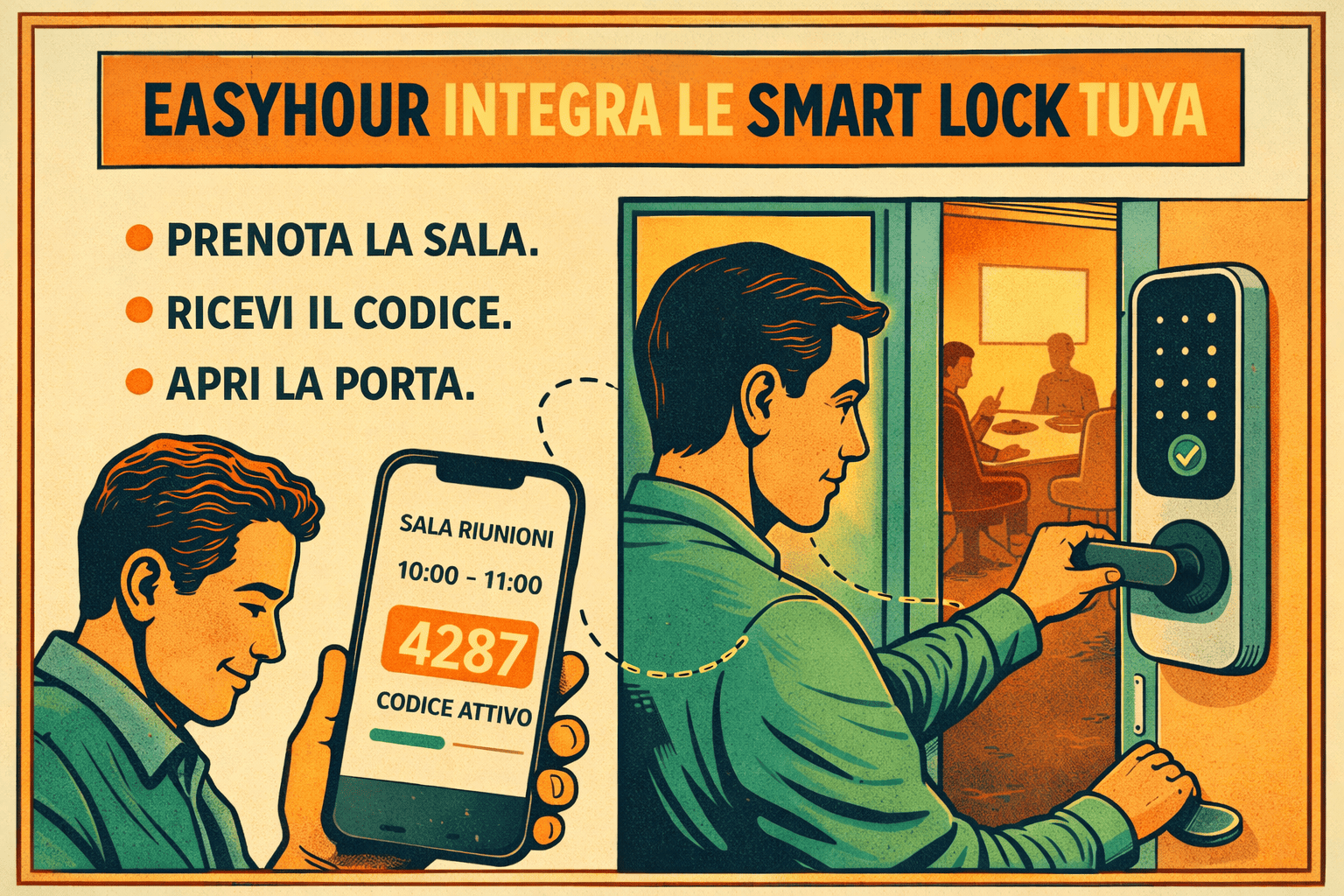 EasyHour integra le smart lock Tuya: la sala riunioni si apre con la prenotazione